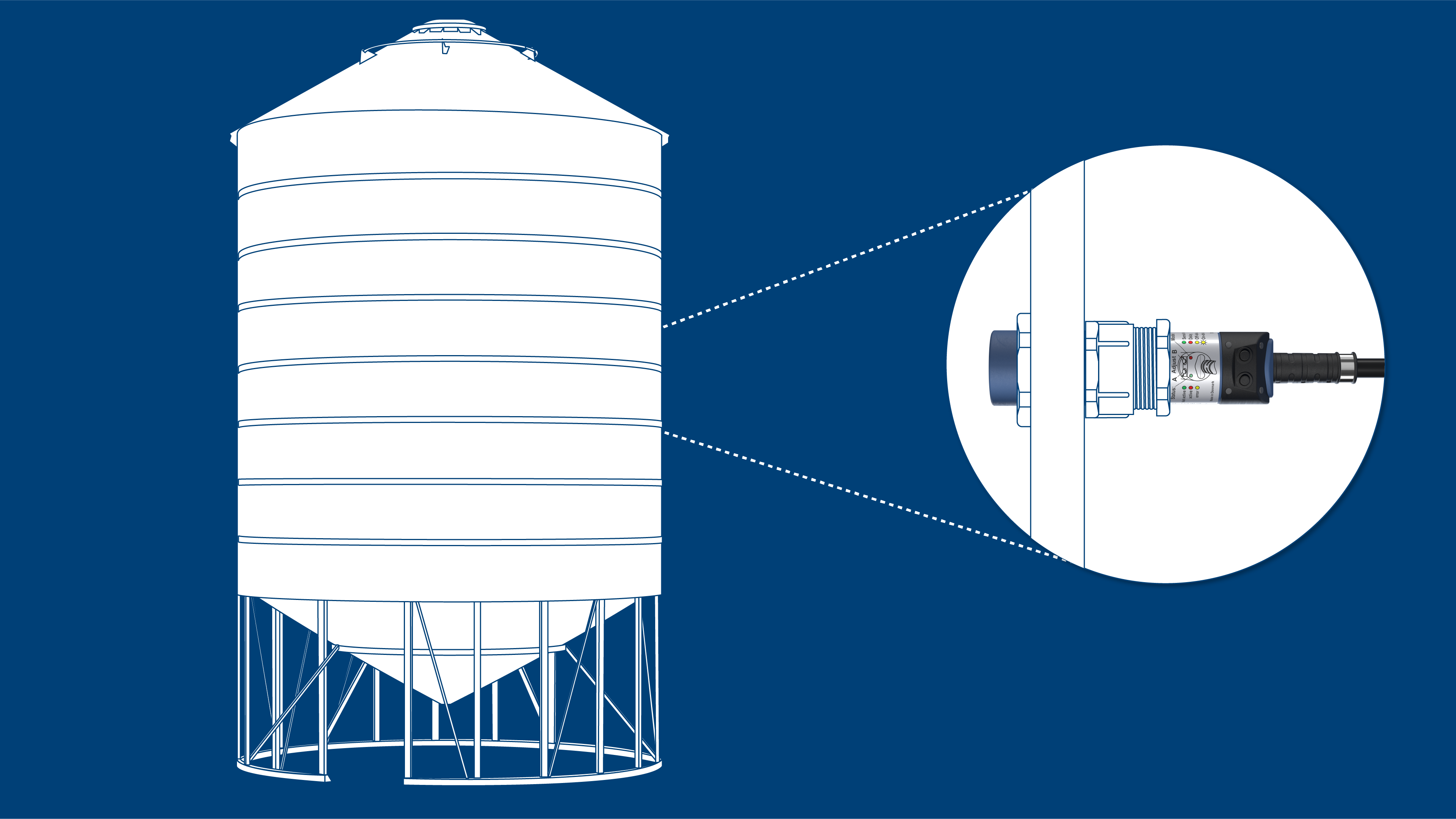 Датчик DOL 45 призначений для загального виявлення кормів, зерна та твердих матеріалів