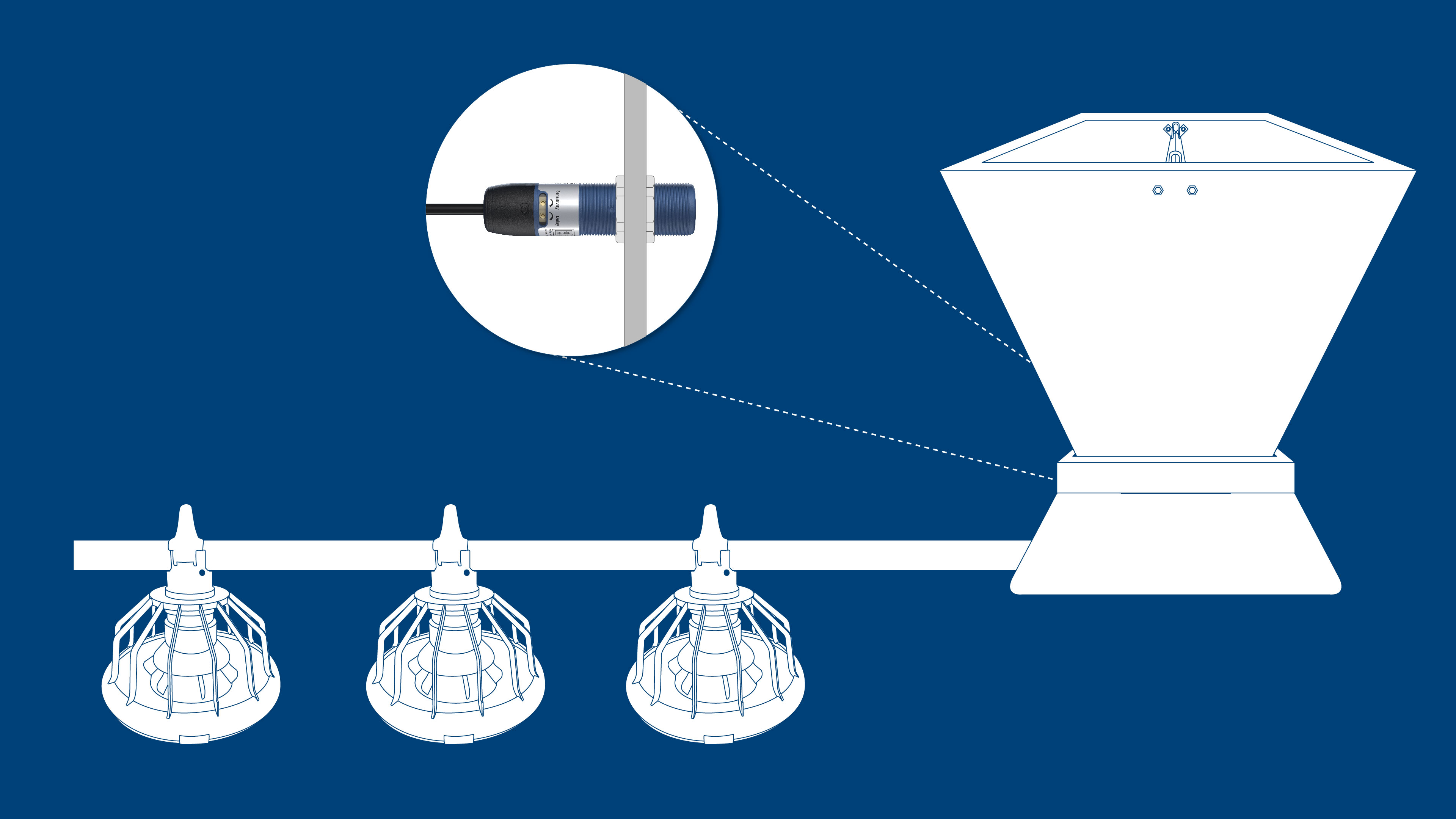 Датчик DOL 28 — це унікальний 30-міліметровий ємнісний релейний датчик із підсвічуванням для виявлення корму, зерна та твердих речовин у системі годівлі. Світло приваблює птахів, щоб переконатися, що вони віддають перевагу певній годівниці.